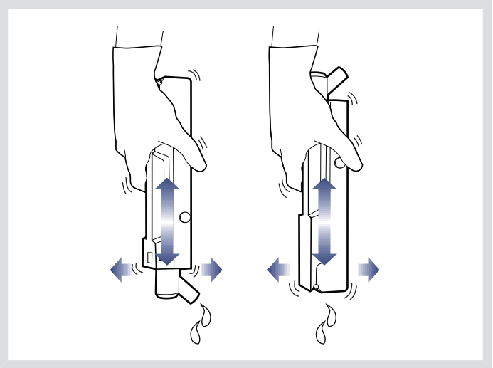 - 小心地晃動并傾斜呼氣封閉盒,然后上下顛倒并重復此動作。