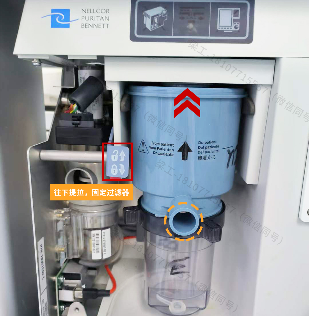 1.將呼出端過濾器鎖扣向右邊旋轉(zhuǎn),聽到“咔”的一聲即可。 2.將集水杯排水口膠塞與呼氣支口對準(zhǔn)在同一水平線上,將集水杯卡緊在過濾器下方,然后往左邊扭緊。 3.將呼吸機主機左側(cè)鎖定裝置往上提拉至解鎖狀態(tài)。 4.將呼氣支口朝外,沿滑軌放入,并使呼出端過濾器邊緣滑到安裝槽內(nèi),推到最里面,推到不能推動為止;放下左側(cè)鎖定裝置,固定呼出端過濾器。 二、拆卸 1.將左側(cè)鎖定裝置往上提拉至解鎖狀態(tài),取出呼出端過濾器。 2.將呼出端過濾器鎖扣向右邊旋轉(zhuǎn),取下集水杯。 3.將集水杯內(nèi)的冷凝水倒入專門收集醫(yī)療廢棄物的容器。 (因為集水杯的冷凝水可能帶有傳染病菌) 4.擦干呼出端過濾器及集水杯的水珠,送去供應(yīng)室進行消毒。 三、消毒 PB840呼吸機的呼出端和吸氣端過濾器應(yīng)該采用高溫高壓的方式進行消毒(溫度132-134℃,20分鐘) 注意:溫度不宜超過135℃,禁止浸泡! 四、PB840呼吸機耗材(呼出端過濾器集水杯、吸入端過濾器、呼出端過濾器) PB840呼吸機流量傳感器 PB840呼吸機兼容氧電池 PB840呼吸機空壓機保養(yǎng)套件