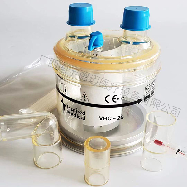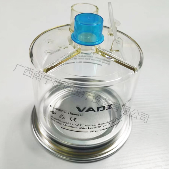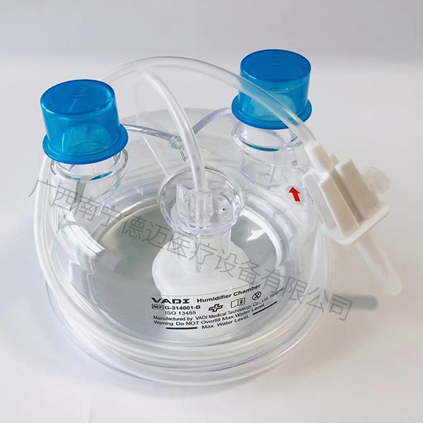 - 垂直的集水杯經濕化器加溫加濕更有效地將氣體輸送給患者,產生的冷凝水及時流入積水杯,避免管路形成死腔。