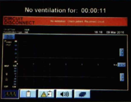 當(dāng)主顯示界面提示CIRCUIT DISCONNECT 時(shí),此時(shí)要注意可能是呼吸機(jī)管路斷開(kāi)或者是管路沒(méi)有接好出現(xiàn)松動(dòng)而引起的無(wú)通氣、通氣不足的情況。